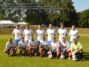 Oslavy 100 let domácího klubu vyvrcholily utkáním bývalých domácích hráčů s mužstvem Klubu fotbalových internacionálů České republiky. Hrálo se za příjemného počasí na úzkém dlouhém hřišti s celkem obstojnou travnatou plochou. Internacionálové od začátku svou technickou převahou přehrávali domácí, kteří hrozili rychlými výpady. Více jak 200 spokojených diváků vidělo nakonec 16 krásných gólů. Za internacionály góly stříleli: Kabyl 3, Hromádko 2, Gibala 2, Kocian 2, Kuchař (není na foto)2, Sabou a Kabyl ml. po 1. Po utkání se střílely pokutové kopy s výsledkem 1 : 4, za internacionály proměnili : Gibala, Kocian, Kabyl a Zlata, který chytil domácím 3 penalty. Kuriozitou bylo, že domácí hřiště má šatny na opačné straně hřiště, než koupelnu a tak hráči omotaní ručníky putují přes hřiště a zpět.